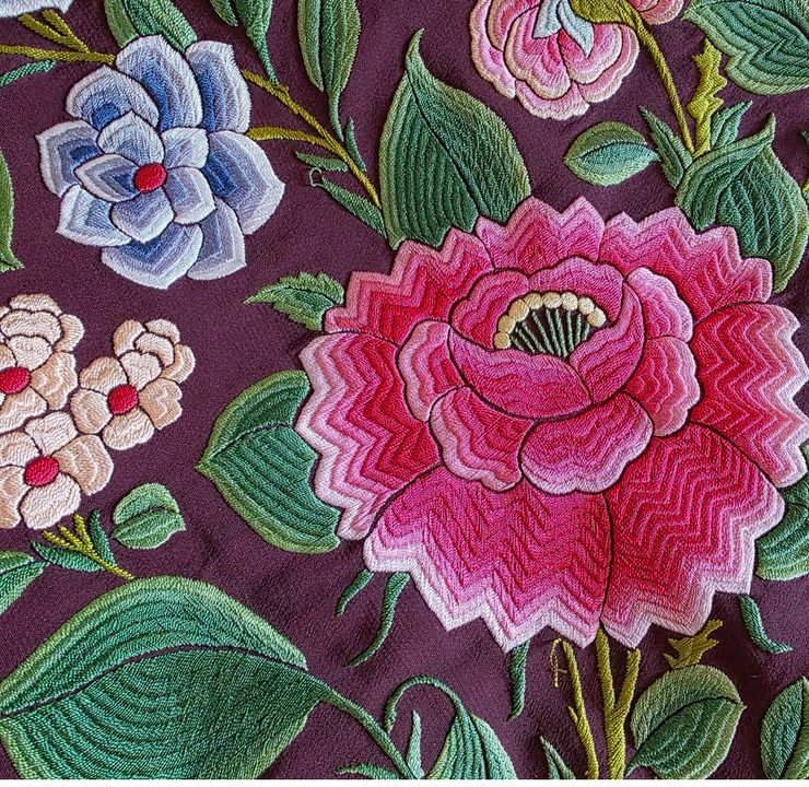 Mantón de Manila antiguo seda natural color ala de mosca