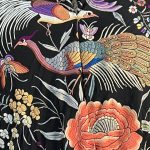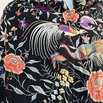 Mantón antiguo negro seda bordado a mano, finamente bordado con motivos de aves del paraíso y flores, 1,50 más flecos.