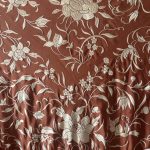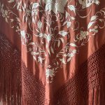 Mantón de Manila antiguo seda natural color marrón tabaco bordado a mano