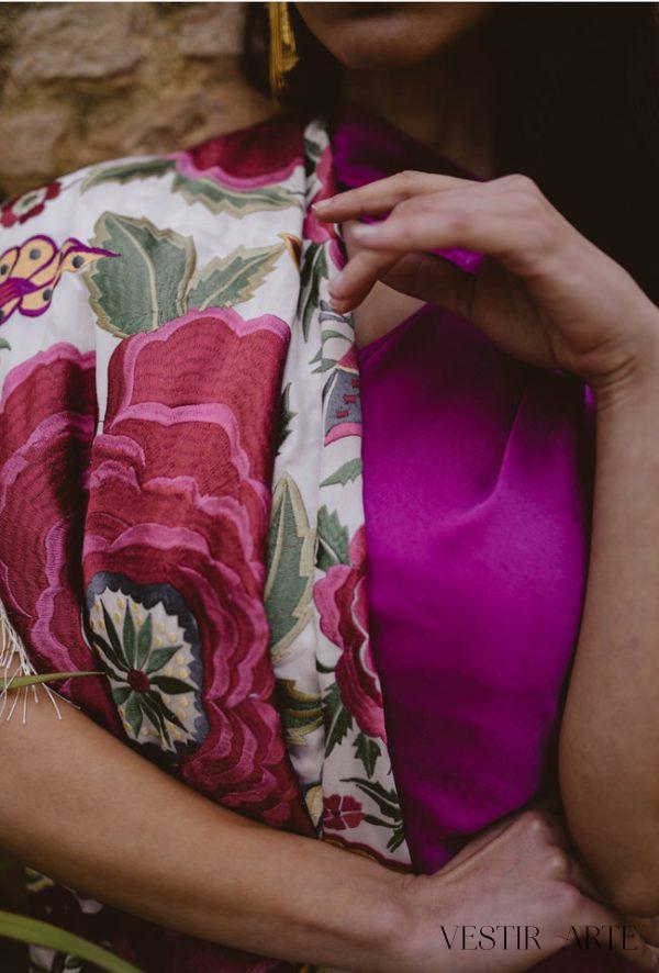 Si buscas un mantón de Manila elegante, ligero y con un diseño original, este modelo es perfecto para ti. Inspirado en un mantón antiguo de cigarrera, destaca por su exquisito bordado de flores grandes y mariposas, que harán que no pases desapercibida.